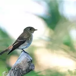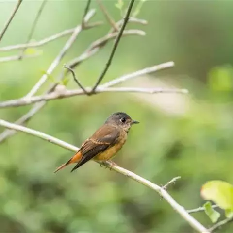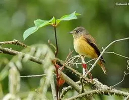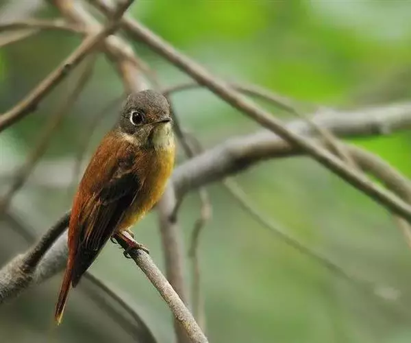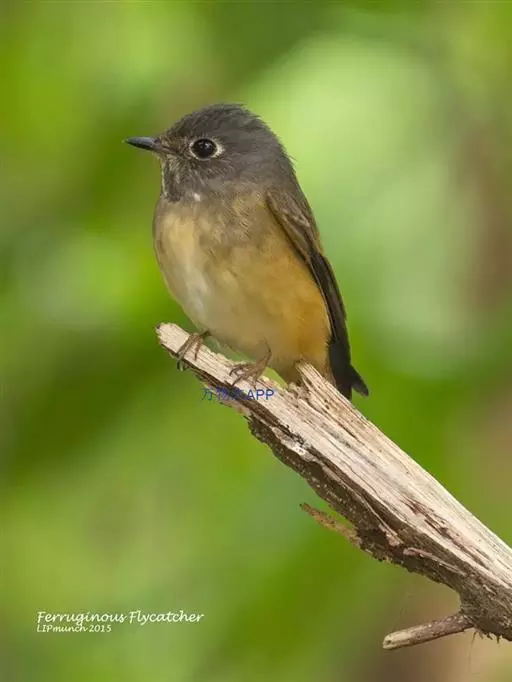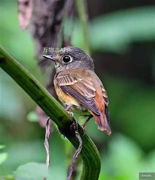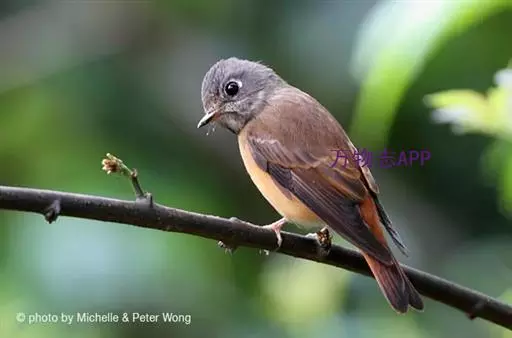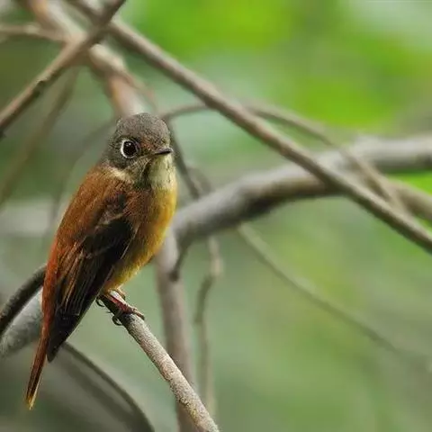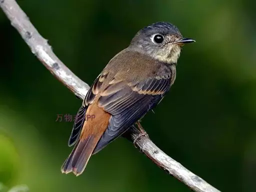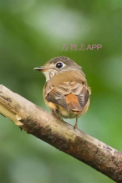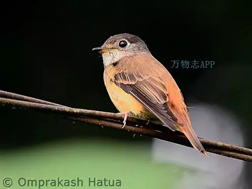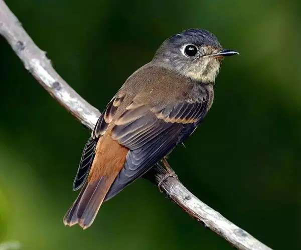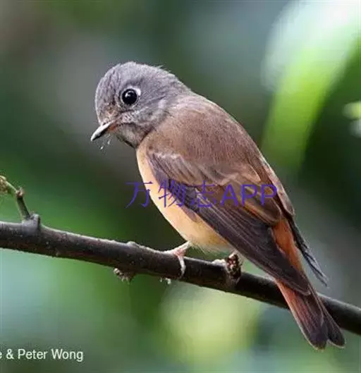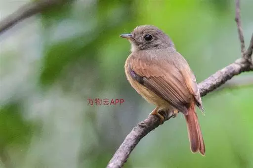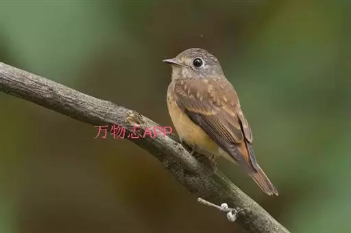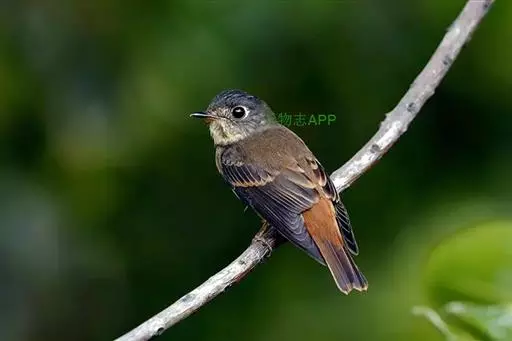 棕尾褐鹟(Muscicapa ferruginea ):体重9-16克;体长109-122毫米,是一种体型略小的红褐色鹟。眼圈皮黄,喉块白,头石板灰色,背褐,腰棕色,下体白,胸具褐色横斑,两胁及尾下覆羽棕色。通常具白色的半颈环。三级飞羽及大覆羽羽缘棕色。虹膜褐色,嘴黑色,脚灰色。