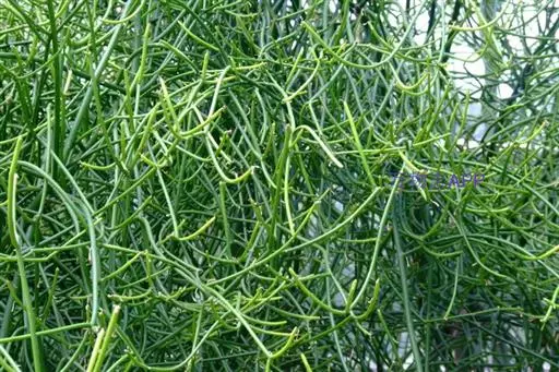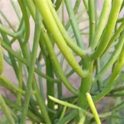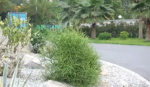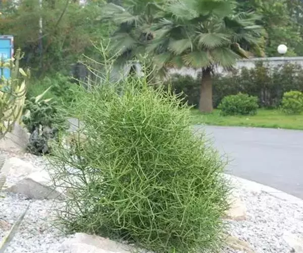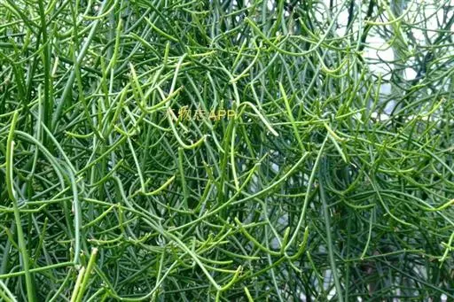 光棍树属大戟科灌木,高可达4~9米,因它的枝条碧绿,光滑,有光泽,所以人们又称它为绿玉树或绿珊瑚。光棍树的白色乳汁有剧毒,观赏或栽培时需特别小心,千万不能让乳汁进入人的口、耳、眼、鼻或伤口中,但这种有毒的乳汁却能抵抗病毒和害虫的侵袭,从而起到保护树体的作用。另据实验表明,光棍树乳汁中碳氢化合物的含量很高,是很有希望的石油植物。
