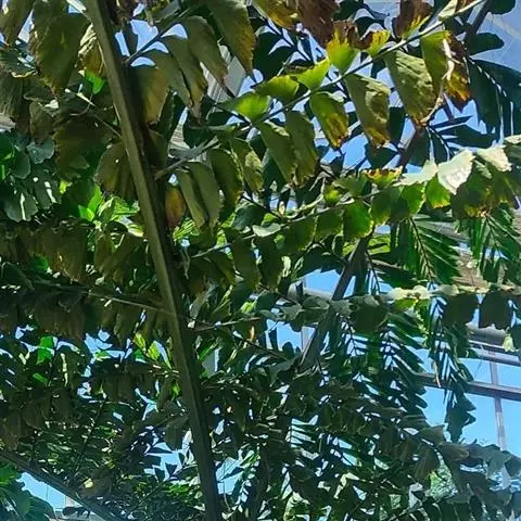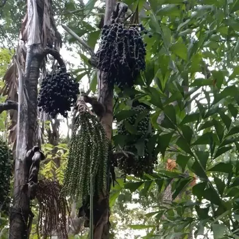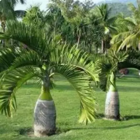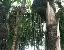 热带雨林温室的槟榔树 种子处理:由于槟榔种子有1个后熟期,采收后应将槟榔种子摊晒5-7天,果皮略干,使其完全成熟后再进行催芽。用编织袋将晒好的槟榔种子装入编织袋中,放在阴凉处,每天早上或晚上浇水1次,连续15-20天,待果皮松软,用清水冲洗干净后接着催芽。