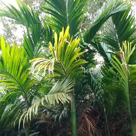 夏威夷椰子是棕榈科金棕属的丛生灌木植物。茎干直立,茎节短而中空,具明显的茎节,…