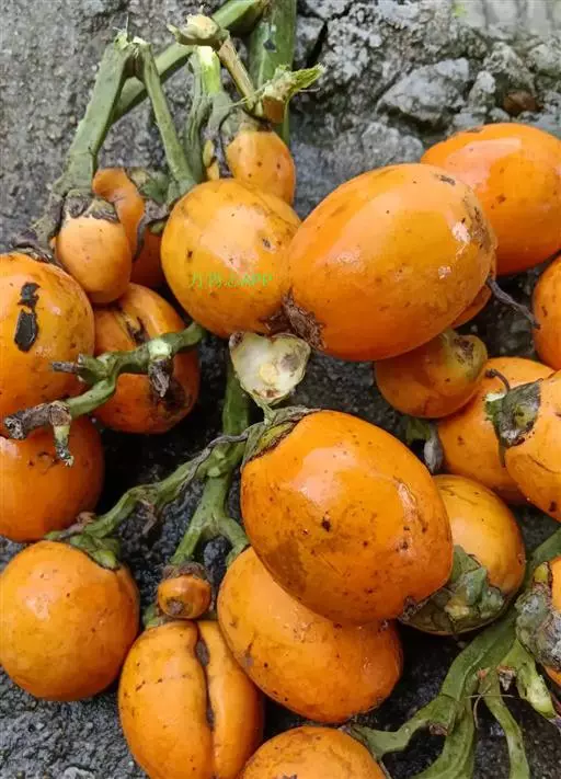 果实长圆形或卵球形,长3-5厘米,橙黄色,中果皮厚,纤维质。种子卵形,基部截平,胚乳嚼烂状,胚基生。花果期3-4月。