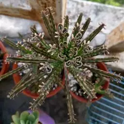 棒叶落地生根是景天科、落地生根属植物。茎直立、粉褐色。叶圆棒形,上表面有沟、粉色,有红褐斑。…