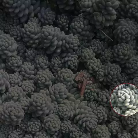 薄雪万年草别名矶小松,景天科景天属多年生草本植物,其细小的蓝绿色棒状叶片环绕生长于茎端,…