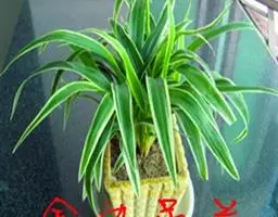 金边吊兰百合科、吊兰属植物。多年生常绿草本植物。叶片呈宽线形,嫩绿色,叶边缘金黄色,着生于短茎上,…