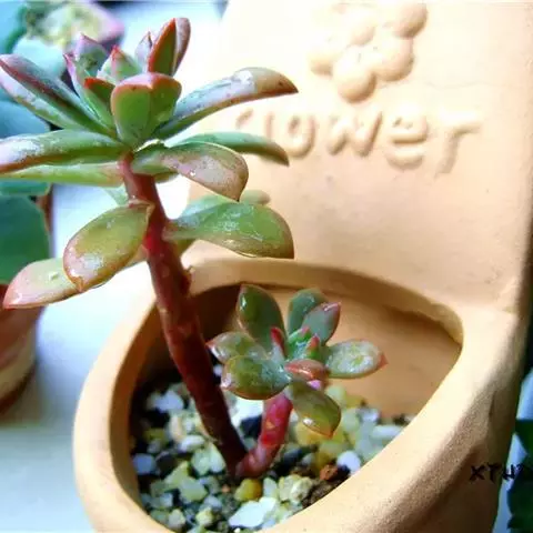 乙姬牡丹为景天科景天属多肉植物,有茎,叶互生,排列成莲座状,匙形,表面光洁,正面平坦,背面隆起,肉…