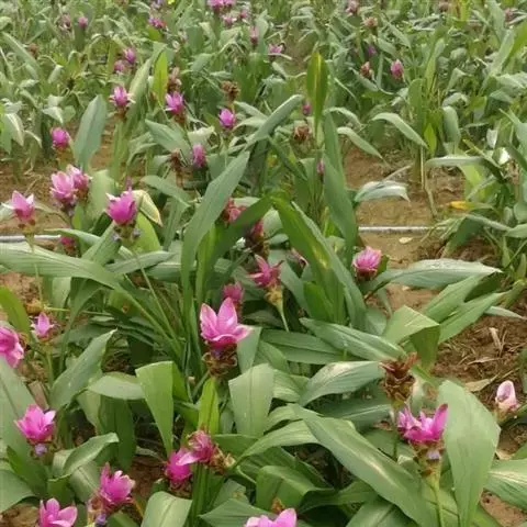 姜荷花 整地后作10-80厘米宽的畦,畦沟20-30厘米,每畦种4行,株距15-25厘米,或每畦种2行,株距7.5-12.5厘米。依基地试验结果显示,每畦种2行萌芽较整齐,每分地约需种球15000-25000球。株距较大者单株切花及种球产量均较高,但如果换算成单位面积产量,株距较小者产量比较高。因此,若采用宿根栽培,株距则应加大。宿根栽培时,宜采用每畦种2行的方式,这样可以方便第二年基肥的施用。此外,宿根栽培立春萌芽较早,可以提早产期。