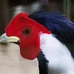 血雉雉科血雉属鸟类,别名血鸡、松花鸡,血雉的雄鸟大覆羽、尾下覆羽、尾上覆羽、脚、头侧、腊膜为红色,…