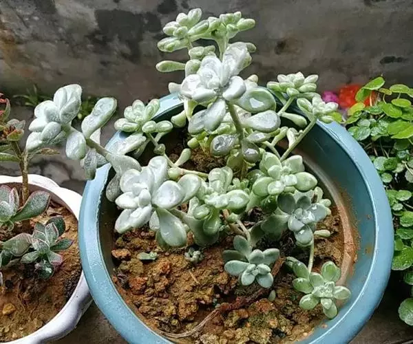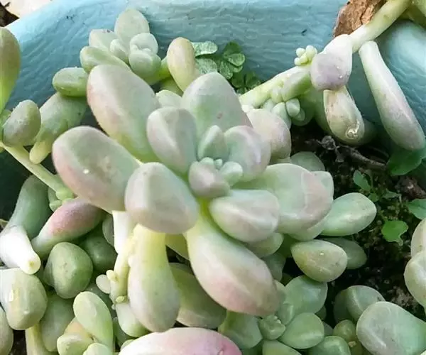 蓝豆是景天科、风车草属的多年生植物,多肉植物。植株叶片覆白粉,呈淡蓝色,…