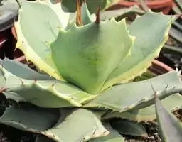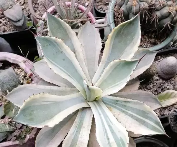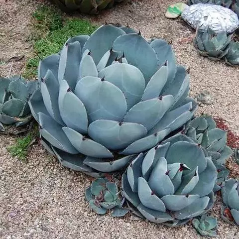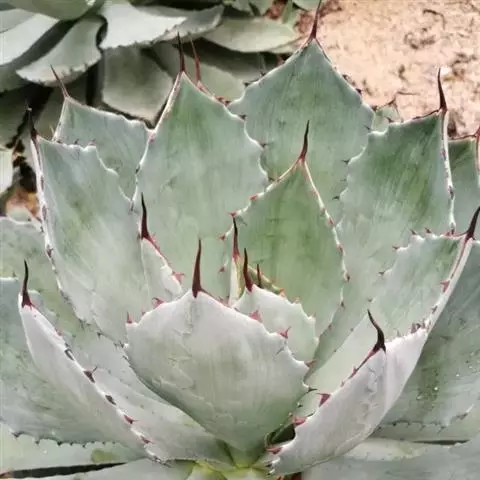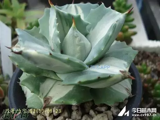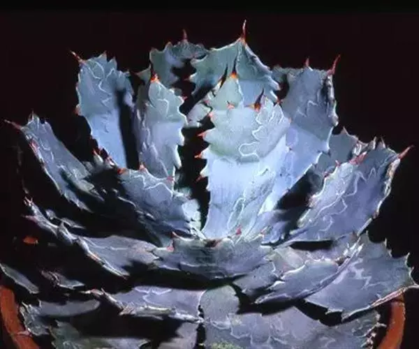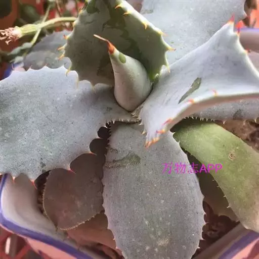 雷神又叫风雷神、戟叶龙舌兰、酒器龙舌兰、棱叶龙舌兰、怒雷神、雪龙,为龙舌兰科、龙舌兰属多年生常绿肉质草本植物。雷神的茎极短,叶丛生,呈莲座状,叶倒卵状长菱形,长7~10厘米,盆栽时叶型会变小,灰绿色,带有白粉,叶缘具明显的红褐色长针刺,以先端的针刺最长 。