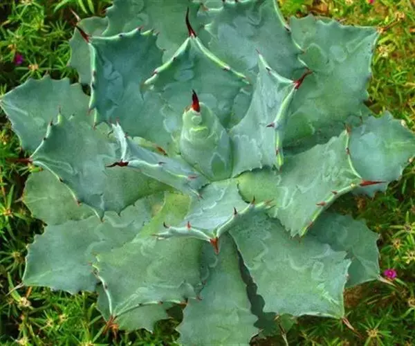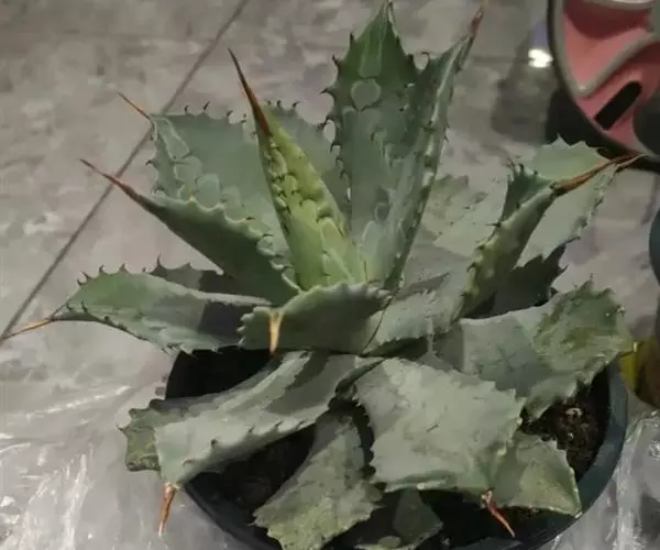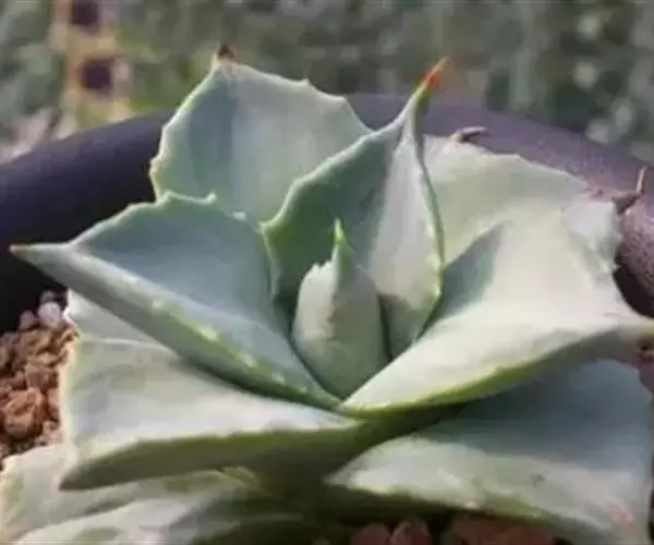 雷神又名棱叶龙舌兰,是天门冬科龙舌兰属的多年生常绿植物。植株矮小,株高6~8厘米,株幅8~10厘米。叶片短而宽,叶缘有稀疏肉齿,齿端生黄色或红色短刺,叶顶端有1枚短刺。原产墨西哥中南部。喜温暖干燥和阳光充足环境。适应性强,较耐寒,略耐阴,怕水涝。以排水良好、肥沃的沙壤土为好。冬季温度不低于4℃。常见园艺品种有:雷神,王妃雷神,雷神锦。