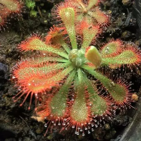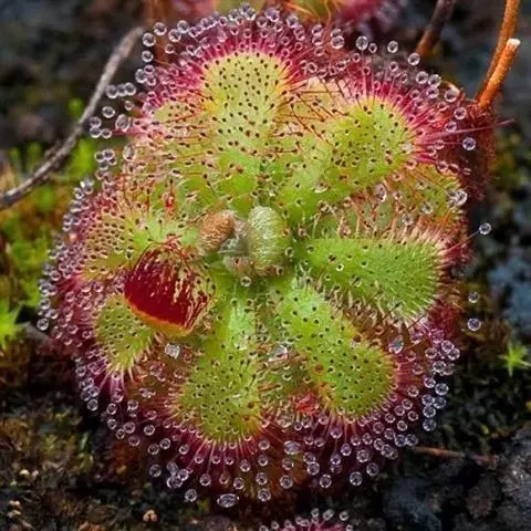 迷你茅膏菜学名圆叶茅膏菜,又名毛毛苔、迷你毛毡苔和迷你茅膏菜,茅膏菜科植物。多年生草本,茎短,叶基…