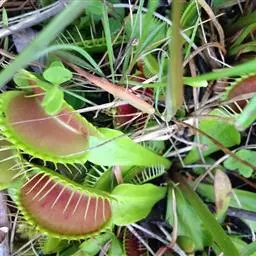 捕蝇草有时会误捉到枯枝、落叶,如果少了这项确认机制,必然会将养分浪费在消化无法消化掉的杂物上。若捕虫器误捉到杂物,只要没有持续的刺激,在数小时之后便会重新打开捕虫器,等待下一个猎物。 捕蝇草 当捕获到昆虫被两瓣叶片给夹住后而无法挣脱,昆虫在挣扎的过程中叶片会越夹越紧直到几乎密闭的状态,这时两片叶瓣内侧密集的内腺体会分泌出消化液,利用这些消化液中含有的蛋白酶,将昆虫的蛋白质分解成以氮、氧、碳、氢为主,还可能包括其他元素构成的氨基酸并进行吸收。一般大约四天左右能分解完成并吸收较易消化的部份,之后再继续吸收剩余的氮、磷以及其它各种所需的微量元素。这些养份都吸收完毕之后,叶瓣就会再度打开,全部时间大约需花5~10天的程度,这时昆虫只剩下由几丁质组成的空壳残骸。