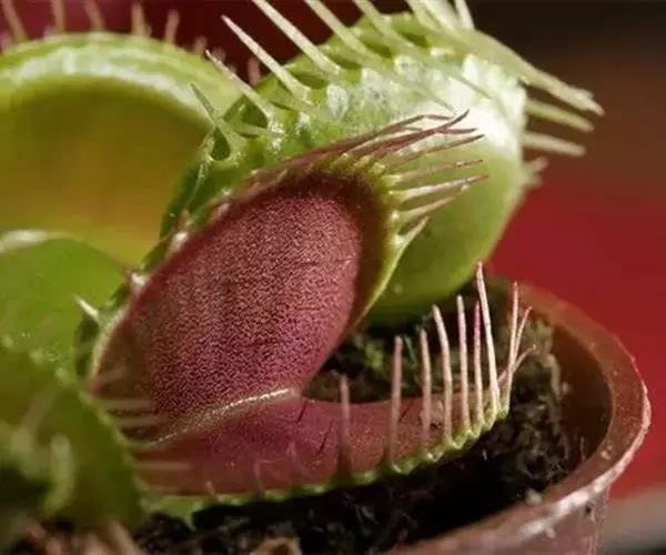 因为叶片边缘会有规则状的刺毛,那种感觉就像维纳斯的睫毛一般,意思是“维纳斯的捕蝇陷阱”。其主要特征就是能够很迅速的关闭叶片捕食昆虫,这是种和其远亲猪笼草一样的食肉植物,在茅膏菜科捕蝇草属中仅此一种,属于维管植物的一种。盆栽可适用于向阳窗台和阳台观赏,也可专做栽植槽培养;捕蝇草被誉为自然界的肉食植物。捕蝇草独特的捕虫本领与酷酷的外型,使它成为了最受国内宠爱的食虫植物。