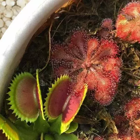捕蝇草 1、捕蝇草偏好保水性佳、酸性的栽培介质。可以直接使用泥碳土或水苔来栽培,也就是完全只用单一种栽培介质即可。不过,水苔的价格较高,而且使用年限较短,但其较其他栽培介质干净,故水苔比较适合作为叶插或小苗的栽培介质。大株的捕蝇草比较适合使用成本较低的泥碳土。有些泥碳土的质地较为细致,因此完全只用泥碳土时可能会造成排水不良,容易积水。我们可以在泥碳土中加入少量的珍珠石或是颗粒土,亦可将泥碳土和沙以一比一的方式溷合使用。事实上,在原产地的捕蝇草是生长在含沙的土地上,使用沙和泥碳土溷合而成的栽培介质或许是最好的选择。由于捕蝇草喜欢偏酸性的栽培介质,因此在沙子的选择上以石英沙、硅沙或河沙为主;不可使用含有钙质的沙,例如珊瑚沙或贝壳沙。