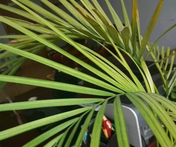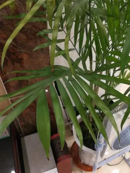 ③盆土过干。散尾葵在生长期间,需要供给充足的水分。盆土长期偏干时,由于植物的生长得不到所需要的充足水分,叶尖及叶缘便会干焦。