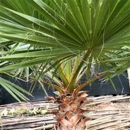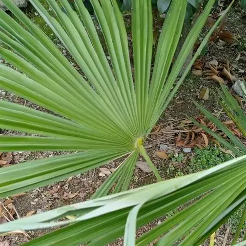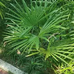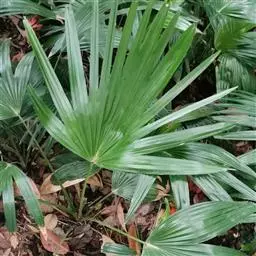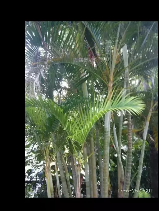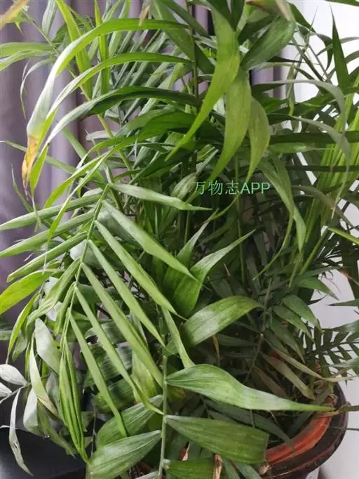 细叶棕竹,灌木,茎细如竹,多数聚生,有网状叶鞘。叶半圆形,掌状深裂,裂片狭长,阔线形,软垂,裂片7…