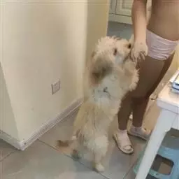 这时测试者需要先让幼犬安静一下,再将它提起来进行下一个测试,测试者将幼犬翻过来背朝地面,然后用手掌按住它胸腔和胃的位置,并施以足够强的力量。测试者不可以同幼犬玩耍而只是按住它的胃部。这是一个微妙的测试,因为不管是支配欲强的幼犬,还是胆怯以至于惊慌失措的幼犬,都会试着尽快够到它们的脚爪。你必须仔细观察支配欲强的幼犬和恐惧的幼犬的区别。绝大部分的幼犬都会背着地停留稍长时间并且不太动,其实是~种不必要的消极态度。在这个测试结束后,测试者应该通过玩耍使幼犬回复平静。