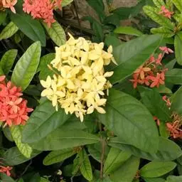 龙船花,又名山丹、卖子木、蒋英木等,是茜草科龙船花属下的一种灌木植物。全株无毛,株高0.8-2米,…
