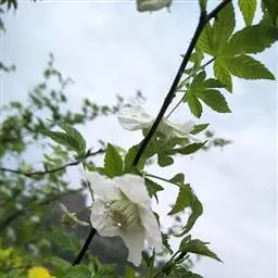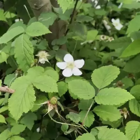 白花悬钩子是蔷薇科、悬钩子属植物。落叶灌木,茎直立、具腺毛,叶互生,边缘锯齿,有叶柄;托叶与叶柄合生,…