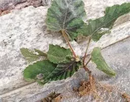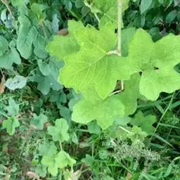 本变种叶片基部宽,近楔形或心形,掌状5裂或3裂约至叶片中部或1/3处,裂片较宽短,卵状披针形,边缘具粗锐锯齿;花萼常无腺毛。