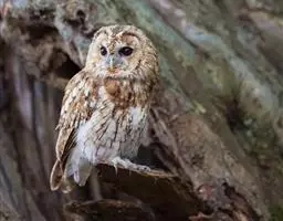 灰林鸮是鸱鸮科、林鸮属鸟类。体长约40厘米;头大而圆,没有耳羽,面盘明显,橙棕色或黑褐色;上体暗灰色,…