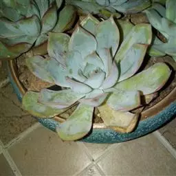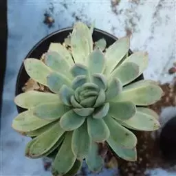 立田锦多肉(Echeveria Pachyveria ‘Albocarinata’),易群生的景天科拟石莲花属和厚叶草属杂交多肉品种。茎直立,株高30厘米以内,其叶排列呈莲座状,叶片直立,被白霜,肉质,披针形,长匙形,先端近无尖或具不明显的短叶尖,叶片中绿色,被白粉后外观呈近白色,在较低的温度下叶缘呈粉红色。