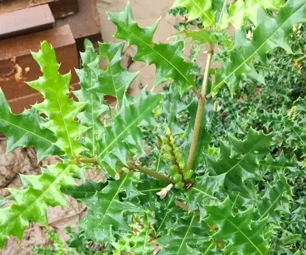 直立灌木,高达2米。茎粗壮,径达9毫米,圆柱状,上部有分枝,无毛。托叶成刺状,叶柄长3-6毫米;叶片长圆形至长圆状披针形,长6-14厘米,宽2-5厘米,先端急尖,基部楔形,边缘4-5羽状浅裂,近革质,两面无毛,主脉在上面凹下,主侧脉在背面明显凸起,侧脉每侧4-5,自裂片顶端突出为尖锐硬刺。
