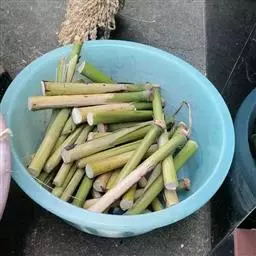 飞水:将水烧开,放少量姜块、白酒、亚硝、桂皮以去腥味,倒入洗净的大肠头,煮约10分钟后捞出。