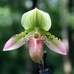 兜兰花比较雅致,色彩比较庄重,色及带有不规则斑点或条纹。花瓣较厚,花朵开放期比较长。属观赏类花草。