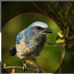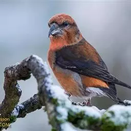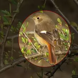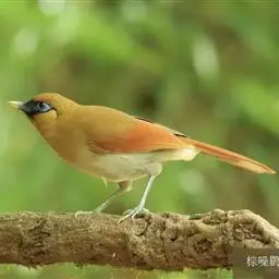 雌鸟额、头顶、枕、后颈一直到背橄榄绿褐色,腰和尾上覆羽朱红色,尾羽黑褐色,暴露部分具蓝色金属光泽,飞羽暗褐色,外翈羽缘棕褐色,眼先,头侧、颈侧和胸侧浅灰褐色。颏、喉、胸至尾下覆羽皮黄色,两胁沾灰褐色,腋羽和翅下覆羽白色。