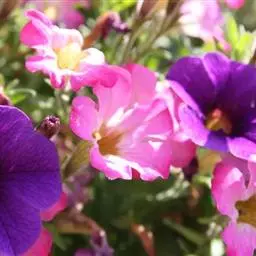 碧冬茄 长日照植物,生长期要求阳光充足,它生长适温为13℃至18℃,冬季温度在4-10℃,如低于4℃,植株生长停止,夏季能耐35℃以上的高温。夏季生长旺期,需充足水分,特别在夏季高温季节,应在早、晚浇水,保持盆土湿润。但梅雨季节,雨水多,对矮牵牛生长十分不利,盆土过湿,茎叶容易徒长,花期雨水多,花朵易褪色或腐烂。盆土若长期积水,则烂根死亡,所以盆栽矮牵牛宜用疏松肥沃和排水良好的砂壤土。