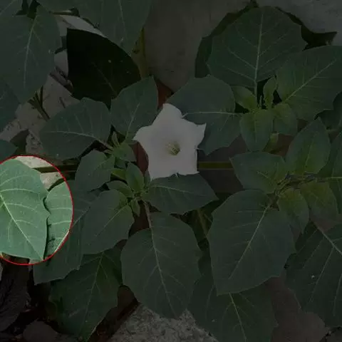 花单生于叶腋,花梗长3-5厘米。花萼5深裂,裂片条形,长1-1.5厘米,宽约3.5毫米,顶端钝,果时宿存;花冠白色或紫堇色,有各式条纹,漏斗状,长5-7厘米,筒部向上渐扩大,檐部开展,有折襞,5浅裂;雄蕊4长1短;花柱稍超过雄蕊。