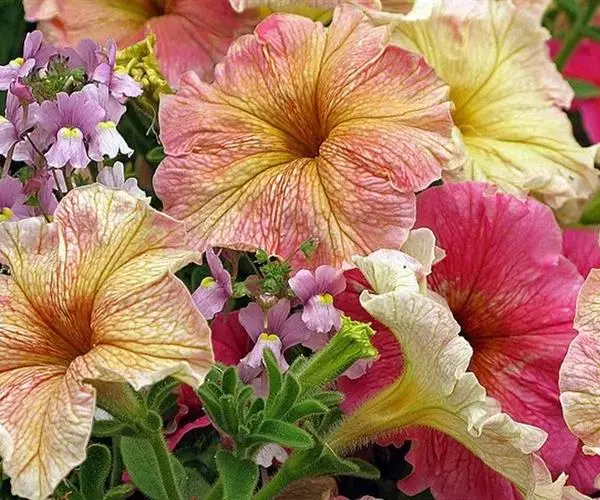 该种花朵硕大,色彩丰富,花型变化颇多,花色有白、粉、红、紫、蓝甚至黑色,以及各种彩斑镶边等色;花冠单瓣、半重瓣、瓣边褶皱状或呈不规则锯齿状。因其花色丰富,视觉效果好,群体表现出众,有着“花坛皇后”之美誉,已成为城市绿化花坛摆放的主要用花。