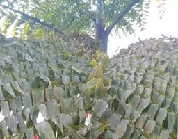 ⑵育苗:苗圃地应选近水源、排水好的沙质土或壤土,深翻25-30厘米,畦宽可种3-4行,行间距离40-45厘米,种植沟深约20厘米,宽度稍大于果种的横径。施入腐熟有机肥与土壤混匀,并铺沙防白蚁。按种间距30-40厘米将催芽处理过的果种斜排沟中,保持幼苗垂直,芽朝同一方向,覆土盖过果种一半,注意要小心操作,不可用力振动果种,幼苗长出后,应适当加覆盖物,并浇足水,苗圃地要加强管理,及时除草、松土,旱季时要经常浇水,但苗圃地不能积水,雨季时要注意排水,春夏季以氮肥为主,可施一些稀粪水,秋季时应施一些钾肥,增强苗木的适应能力,1年后,当苗木生长到约1米时便可出圃栽植。