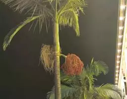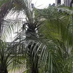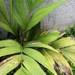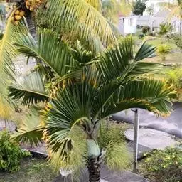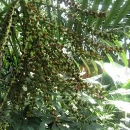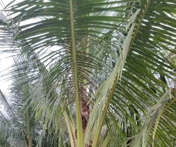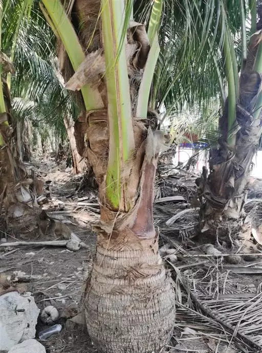 ⑶施肥:椰子树需施全肥,以钾肥最多,其次为氮、磷和氯肥,但必须注意平衡施肥。椰树缺钾时,茎干细,叶短小,树冠中部叶片首先萎蔫,上部叶片向下簇伸,低部叶片干枯、下垂悬挂于树干;缺氮时,幼叶失绿、少光泽,老叶出现不同程度的黄化,结果量减少,椰肉干产量降低;缺磷会引起根系发展不良和果腐;缺氯会影响椰果大小、椰肉干产量以及氮的吸收和植株对水分的利用。因此,施肥时要以有机肥为主,化肥为辅,并施一些食盐。每年可在4-5月及11-12月施肥,在距离树基部1.5-2米处开施肥沟,效果较好。若用撒施法,应全面除草松土后再施肥。