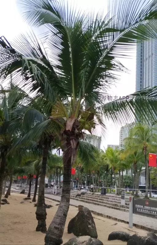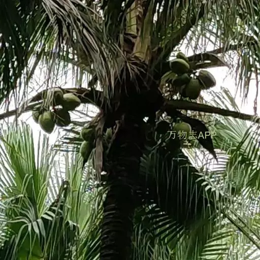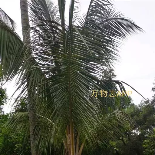 椰子(学名:Cocos nucifera L. )棕榈科椰子属植物,植株高大,乔木状,高15-30米,茎粗壮,有环状叶痕,基部增粗,常有簇生小根。叶柄粗壮,花序腋生,果卵球状或近球形,果腔含有胚乳(即“果肉”或种仁),胚和汁液(椰子水),花果期主要在秋季。