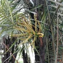 椰子 花序腋生,长1.5-2米,多分枝;佛焰苞纺锤形,厚木质,最下部的长60-100厘米或更长,老时脱落;雄花萼片3片,鳞片状,长3-4毫米,花瓣3枚,卵状长圆形,长1-1.5厘米,雄蕊6枚,花丝长1毫米,花药长3毫米;雌花基部有小苞片数枚;萼片阔圆形,宽约2.5厘米,花瓣与萼片相似,但较小。