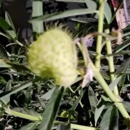 黄冠马利筋(Asclepias curassavica Linn. cv. Flaviflora),亚灌木,高60~100厘米,无毛,全株有白色乳汁。叶对生,披针形或椭圆状披针形,顶端短尖或急尖,基部楔形。聚伞花序顶生及腋生,花冠黄色。蓇葖果刺刀形,端部渐尖。花期5~8月,果期8~12月。
