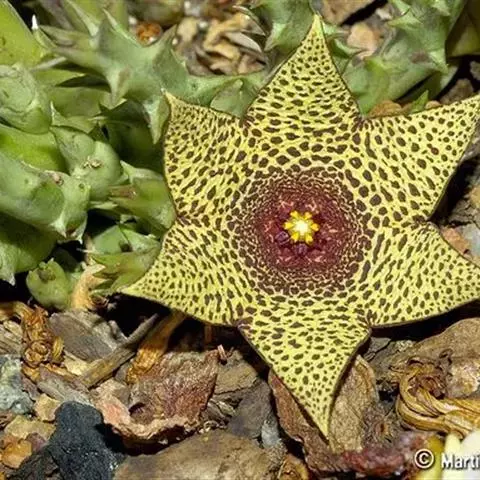 豹皮花 L. C. Leach)是夹竹桃科、豹皮花属植物。肉质植物,茎亮绿色,几株簇生在一起,…