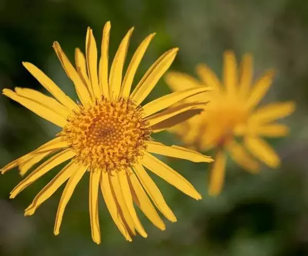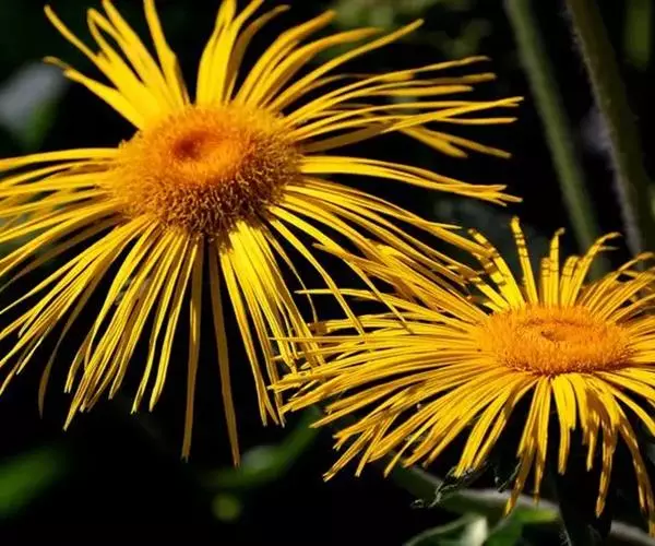 下部叶倒卵状披针形,基部渐狭成长柄,中部叶长圆形至披针形,顶端尖,基部稍狭,上部叶渐小,披针形或线状披针形,顶端尖,基部狭,无柄,全缘或具疏细齿,两面被贴伏短毛或绢毛;头状花序单生于茎或枝顶端,径3—6厘米;总苞半球形,总苞片绿色,草质,卵状披针形,顶端长尖,背面被贴生绢毛;花暗黄色,舌状花雌性,舌片宽2—3毫米,顶端具2—4个小齿裂;两性花花冠管状,长约4毫米,檐部钟状,有5个卵形的裂片;雌花瘦果三棱形,长3—4毫米,具狭翅;两性花瘦果近圆柱形,长2—3毫米,无毛;冠毛的膜片冠状,具齿或短芒。