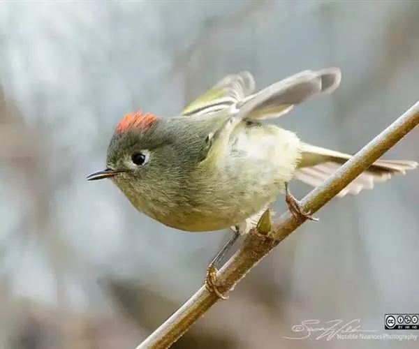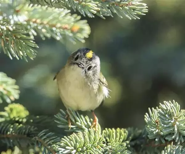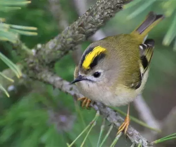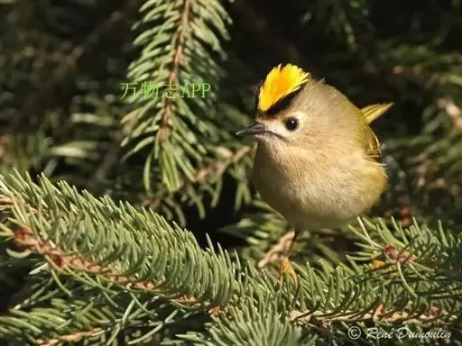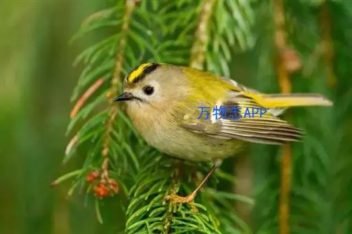 雌鸟大致和雄鸟相似,但羽色较暗淡,头顶中央斑不为橙红色而为柠檬黄色。