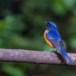 棕腹大仙鹟:体重24-28克,体长15-17厘米,是一种小型的色彩亮丽的鹟。雄鸟上体深蓝,下体棕色,…