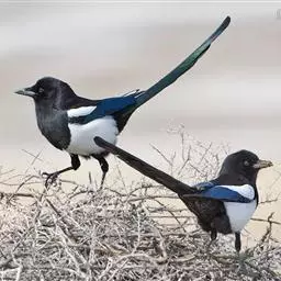 喜鹊:是鸦科、鹊属的一种鸟类。共有11个亚种。体长40-50厘米,雌雄羽色相似,…