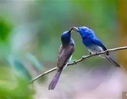 纯蓝仙鹟:体长16-17厘米,体重18-23克。是一种体型略大的浅蓝色或近褐色的鹟。雄鸟上体亮丽钴蓝,…