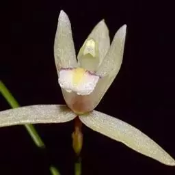 总状花序长3-8厘米,通常有5-10朵花;花苞片很小,长1-2毫米,最下面的1枚非叶状,长度不超过花梗和子房;花黄色,直立,稍微张开;萼片菱状椭圆形,长1.2-1.5厘米,宽3.5-4.5毫米,先端钝或急尖,具5脉;花瓣与萼片相似,但较短,一般长1-1.2厘米;唇瓣长8-9毫米,3裂,基部有距;侧裂片三角形,多少围抱蕊柱;中裂片近扁圆形,长约5毫米,宽8-9毫米,上面具5-7条纵褶片,中央的3条较高(0.5-1毫米),近顶端处密生乳突;距圆锥形,长约3毫米,明显伸出侧萼片基部之外,先端钝;蕊柱长6-7毫米,顶端稍扩大。