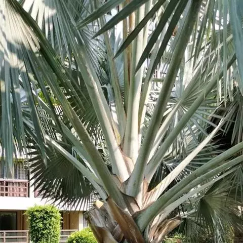 蒲葵 R. Br. ex Mart.),棕榈科蒲葵属木本植物。叶为扇形,两面均为绿色,…