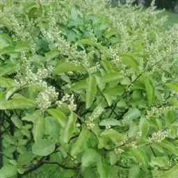 水蜡树,木樨科女贞属落叶多分枝灌木。小枝被微柔毛或柔毛;叶长椭圆形无毛或被柔毛;花序轴、花梗、花萼均被柔毛;果近球形或宽椭圆形,成熟时紫黑色;花期5~6月,果期8~10月。水蜡树原产于中国,分布于黑龙江、辽宁、浙江、山东及江苏等地,在日本和朝鲜也有分布。常生于山坡、山沟石缝、山涧林下和田边、水沟旁。水蜡树喜光稍耐荫较耐寒,耐干旱耐瘠薄,喜肥沃湿润土壤。主要繁殖方式为播种、扦插和分株繁殖。水蜡树的果实可补肝肾,强腰膝,主治阴虚内热、头晕、目花、耳鸣、须发早白;其树皮可强筋健骨,主治腰膝酸痛、两脚无力、水火烫伤。水蜡树苍劲古雅,形态多姿,叶片色泽光亮,耐修剪,易于造型,可制作枯干式、直干式、大树型、悬崖式等多种造型的盆景。其还可饲养蜡虫取蜡,据《本草纲木》记载:“水蜡树,叶微似榆,亦可放虫生蝠,甜槠树亦可放蜡”。
