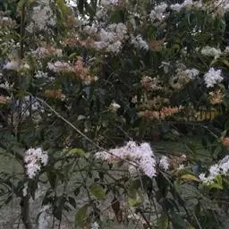 圆锥花序着生于小枝顶端,长1.5-4厘米,宽1.5-2.5(-3)厘米;花序轴、花梗、花萼均被微柔毛或短柔毛;花梗长0-2毫米;花萼长1.5-2毫米,截形或萼齿呈浅三角形;花冠管长3.5-6毫米,裂片狭卵形至披针形,长2-4毫米;花药披针形,长约2.5毫米,短于花冠裂片或达裂片的1/2处;花柱长2-3毫米。果近球形或宽椭圆形,长5-8毫米,径4-6毫米。花期5-6月,果期8-10月。
