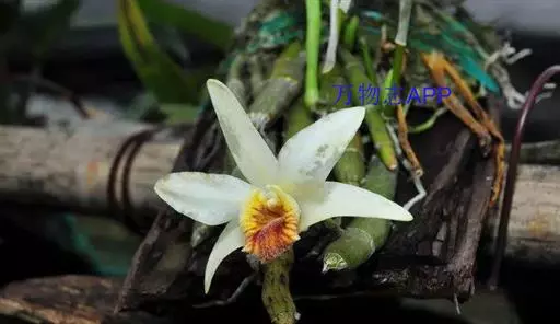 尖刀唇石斛 尖刀唇石斛茎常斜立,厚肉质,基部收狭,向上增粗,多少呈棒状,长5-27厘米,粗1-1.5厘米,不分枝,具数节,节多少肿大,节间长2-3厘米,鲜时金黄色,干后琉璜色带污黑色。叶革质,长圆状披针形,通常长7-10厘米,宽1.2-2厘米,先端急尖或稍钝,基部具抱茎的膜质鞘。