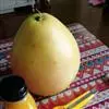 果形和果实大小都不整的,果梗部似三宝柑,有突起短颈,也有完全无短颈的,无颈的扁平果顶多有脐。果皮黄橙色,10月中旬开始着色,12月上旬完全着色。果皮黄橙色,厚3.5-5mm。成熟果果皮略粗。易剥皮,有碰柑香味,无浮皮。